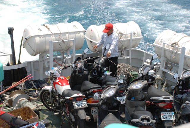 この写真のように自分達のハ゛イクを船に乗せて運んでくれます。