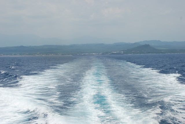 この日は天気に恵まれ船のデッキから後方を見ると海の色がすばらしく綺麗でした。