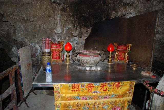 赤い鳥居をくぐり奥へ進むと小さな洞窟があり、祭壇が祀られていた。3bb3fecf.jpg