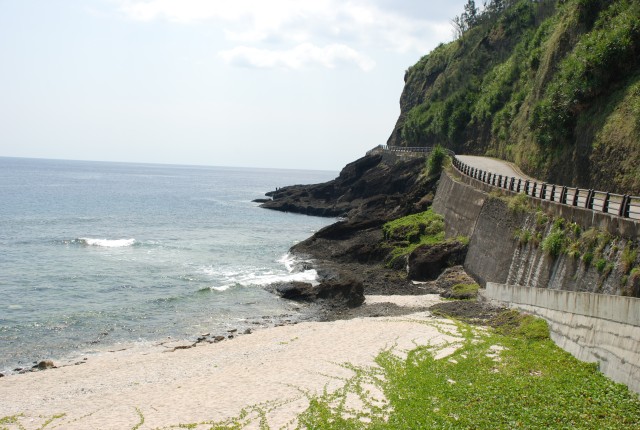 ここは島の最南端で、カーブを曲がると巨大な岩が沢山あり