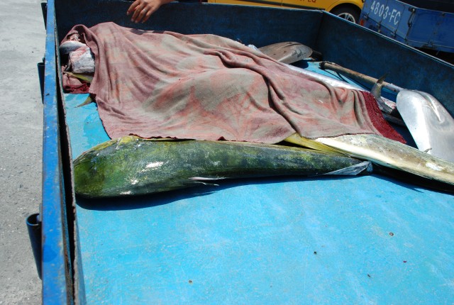 トラックの荷台に無造作に積み込まれたシイラという魚です。