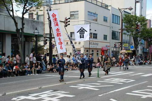 会津の初代藩主保科正之公とその藩士達に扮したご一行。