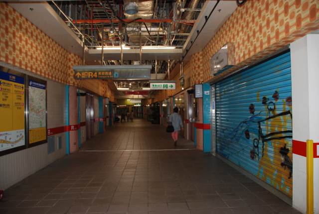 MRTスワンレン駅から台北駅までは地下のショッピングモールて゛繋がっております。 歩いてみてその距離の長いのには驚かされます。 正確には解りませんが、1kmはゆうにあるかと思います。 この日は朝早かったので未だ店はオープン前でした。 天井の一部がこのようにオープンになっていてとてもユニークなつくりです。