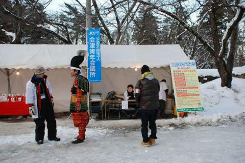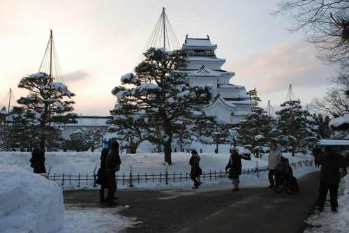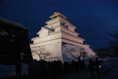 ライトアップされた鶴ヶ城天守閣。