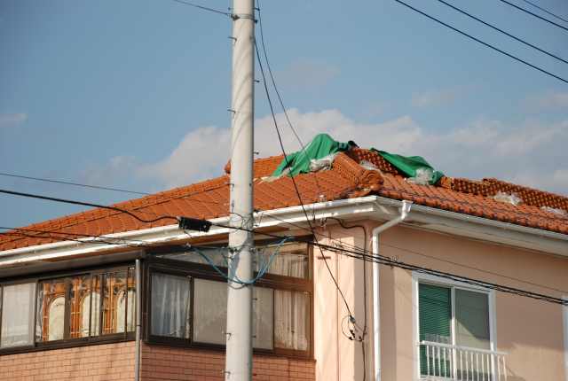 当店では震災により屋根の一部が被災しました。