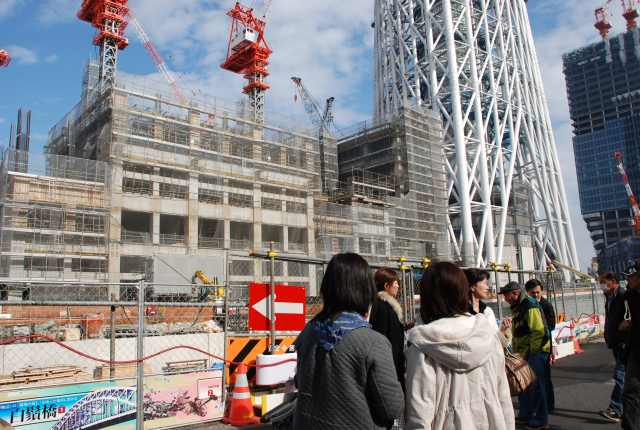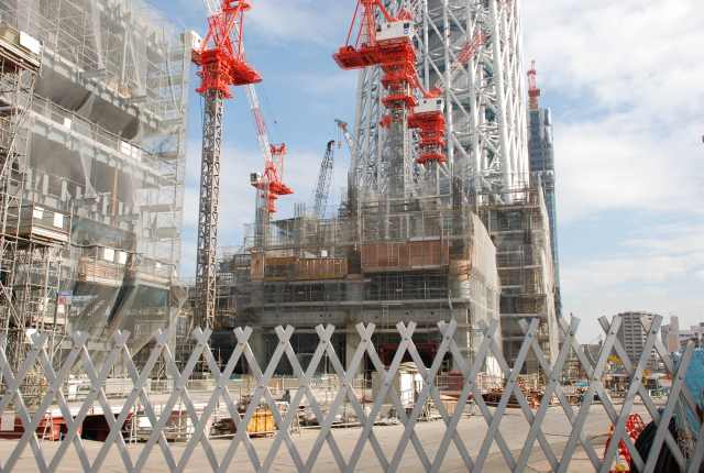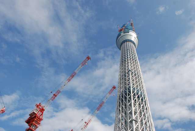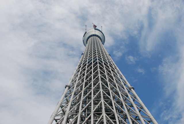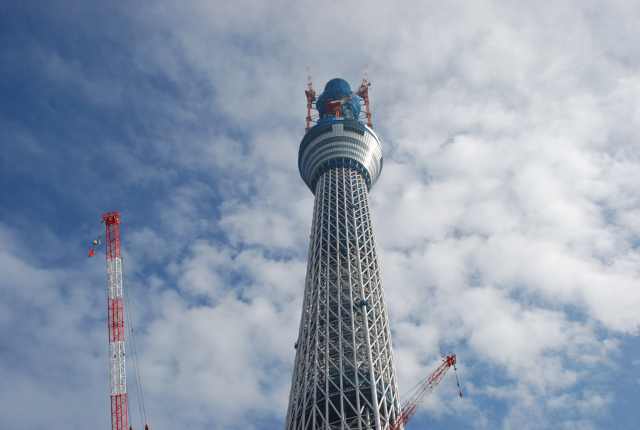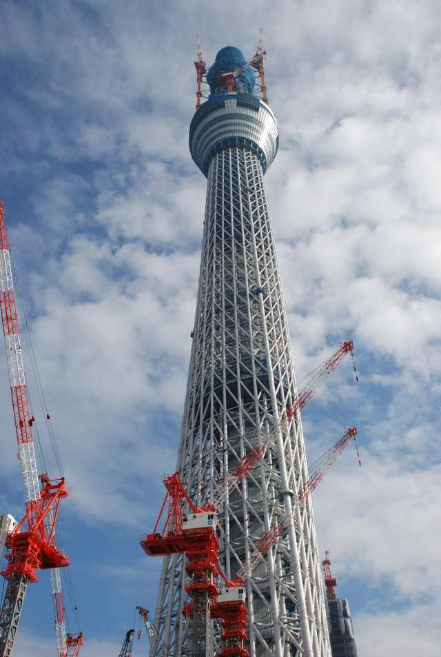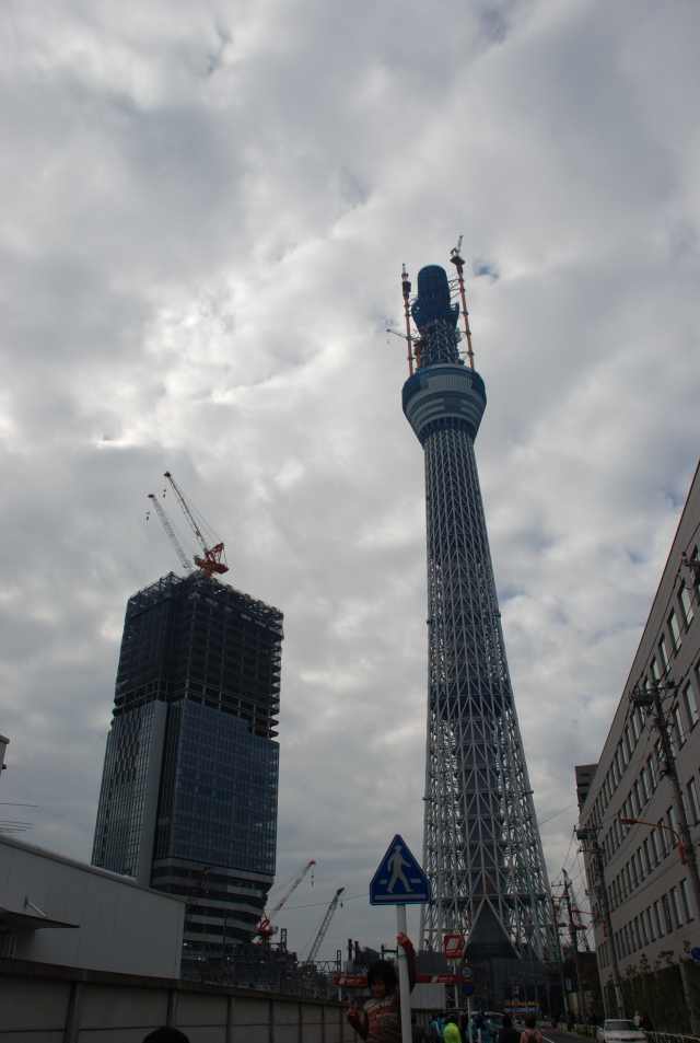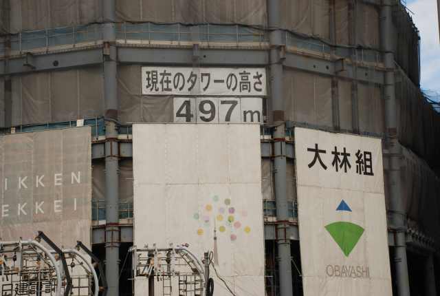 スカイツリーを真下から見るとかなりの迫力。 只今高さは497m 完成が今から楽しみです。