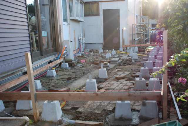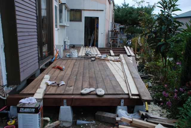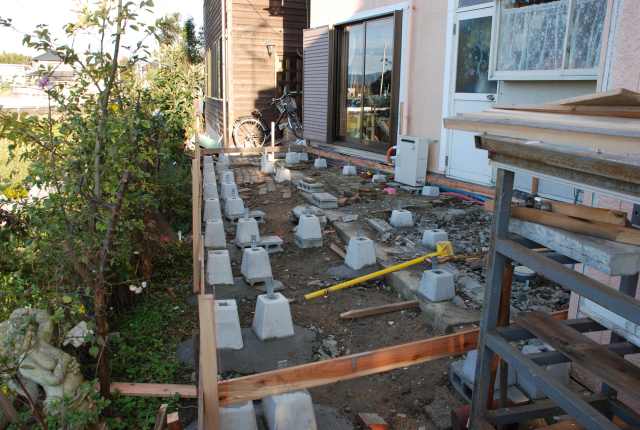 店に隣接してウッドデッキをつくる。 面積は約8畳程。 限られたスペースなので 変形になってしまうが、ここから見る 西側の景色はとても良い。 今回は職人さんの手を借りずに 自分で基礎から造ることにした。 まもなく完成するが、着工からの 経過を紹介します。