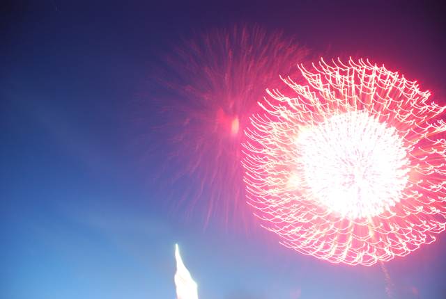 目的はあの巨大な超度迫力の三尺玉の花火を見る為です。