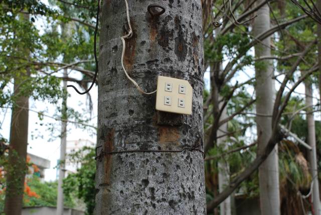 ヤシの木に取り付けたコンセント、とてもユニークだと思いませんか? 台湾人は緻密さとアバウトな部分を兼ね備ており この光景などは国民性がよく象徴されていると思います。