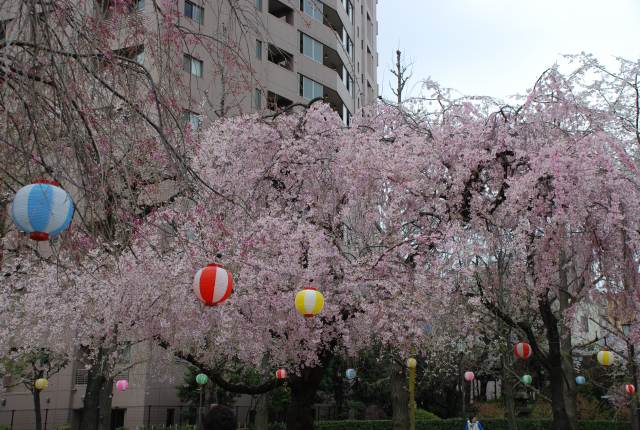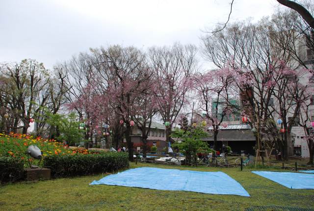 上野公園でも同じような事を目にしたのだが、桜の花があちこちに