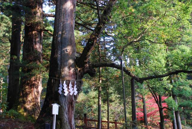 よく見ると杉の幹にナラの木の枝が張り出しています。